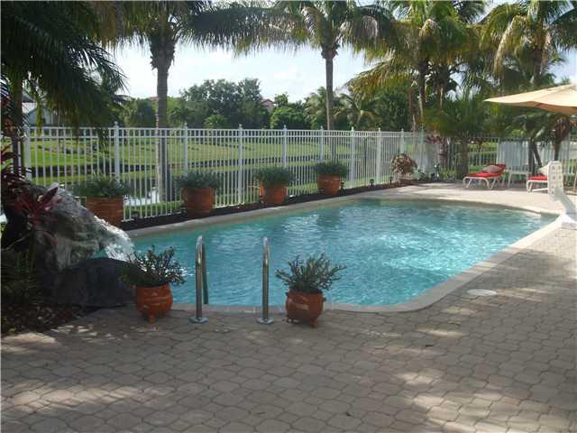 Charming small gated community bordering Weston and The Ranches. 5/3/2 Mediterranean Home on a lake with a pool. This one story, split floor plan offers large Master suite. High ceilings, crown molding and tropical murals create a bright open home. Dua l central air conditioners, tile floor, alarm system, hurricane shutters complete with generator inlet transfer switches. This home is clean and turn key! Walk your kids to an "A" rated elem school. Custom window treatments and porch swing not included.