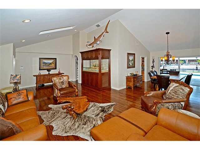 Handsomely remodeled, move-in ready, gated estate home bordering 80' of dock on deep water canal . Features 5BR/3BA, 2CG,& pool. Antique hardwood floors throughout, vaulted ceilings, high impact windows. Magnificent custom mahogany office, formal living & dining areas, chef's kitchen w open concept family room & breakfast area. Upstairs includes 7-seat home theatre & grand master suite w private sitting area, fireplace, & waterfront balcony. Outside designed for entertaining w custom BBQ, private pool