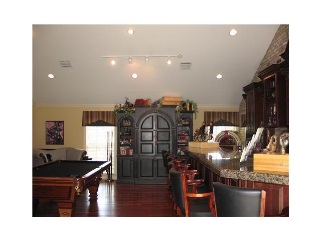 Architecturally appealing & pristine, this 4BR/4BA home boasts soaring wood ceilings, wood/slate flrs w/lavishly decorated designer finishes. Gourmet kitchen w/ s/s appls, decorative wood beams/moldings & custom millwork thru-out. Chicago brick backdrops to built-in bar area, outdoor covered bar gazebo & brick BBQ social areas ideal for entertaining alongside resort-style pool. Det. 1BR/1BA guesthouse over the2-CG. Private bridge to elect entry gates. Basketball court, mature oak trees & Northern pines.