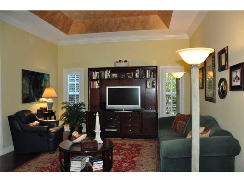 Immaculate one story home in Rio Vista.Open plan layout with high end upgrades/features. Chef's kitchen with granite counters and gas cook top island. Master bedroom has his/her walk in closets and french doors to patio/backyard. Real wood floors, crown m olding and 10' ceilings. 3rd bedroom is converted into a den/library with gas fireplace & built in bookshelves. Very private, lushly landscaped backyard with room for a pool. Hurricane resistant windows/doors. Too many features to list-see attachment.