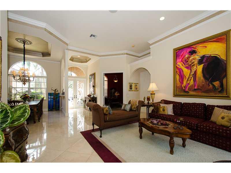 Spacious Weston Hills six bedroom, five full and one half bath home featuring triple split plan with separate in-law quarters and maids room. Master bedroom has a separate sitting area, wood floors, and his/her walk-in closets. Formal living and dining ro oms, eat-in kitchen overlooking family room with views of the 9th hole, crown molding throughout as well as Hunter-Douglas window treatments. Gated community and A-Rated schools.