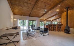 Outside:HUGE LOT! This property is an oversized lot with an additional property parcel available. Approximately 3,500 Sq.Ft under air with deer lap pool, complete with a 37X37, spacious outdoor entertainment area. Covered deck patio area with stained cypress wood ceiling. NEW ROOF!Inside:Tall stunning pine ceilings captivate you as you enter this 5 bedroom, 4 bath, 3 car garage home. This updated kitchen is fit for a chef featuring top of the line appliances, gas stove, dual dishwashers, ice maker, beverage fridge and more! Freshly painted inside and out ready for the buyer to decorate! Easy to show.
