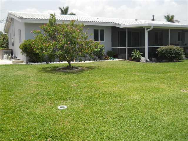 Immaculate! Updated home on wide canal w/dock, one fixed bridge, great ocean access. Gorgeous kitchen, custom-made cherry wood cabinets w/ glass-inset doors, granite counters & backsplash, top-of-the-line appliances, updated bath w/custom vanity, crown mo lding, beautiful high-end lighting & paddlefans, highly polished terrazzo floors, large util rm with newer washer/dryer, hurricane impact windows & doors, accordian shutters, new blinds & valances, new Hi-Eff A/C in 2005, new curved tile roof in '97