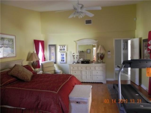 This 4 bedroom 2 bath lake front home is located in beautiful Guard Gated Hidden Hammocks Estates. The kitchen has upgraded custom wild birch cabinets, granite countertops with large eating area. The Interior boasts 14 foot vaulted ceilings, floors in mai n living area are tiled, laminate wood floors and carpeting in bedrooms. Accordion hurricane shutters, impact front and cabana bathroom doors, pool has hot tub with waterfall spill over, new Rheem air conditioner and new Hayward pool filter.