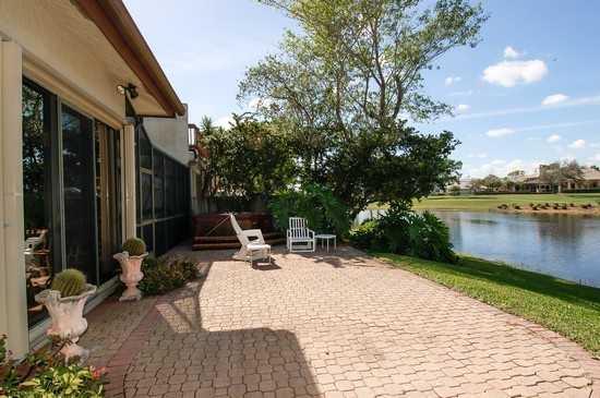 Million dollar view at GREAT price! Architecturally unique: volume ceilings, clerestory windows & skylights. Wide water lagoon & golf course views & estate homes in distance. Accordion hurricane shutters. Split bedroom floor plan & separate formal & i nformal areas. Oversized master bedroom, light oak kitchen & corian countertops, outdoor screened lanai is an outdoor living room + large open patio, hot tub stays. Very private & serene!