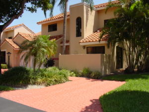 Exclusive & desirable Boca Pointe! Estate Sale-Lovingly used by one owner,this largest model in Meridiana has over 2500 AC sq.ft. & awaits your personal touches. Corner unit w/1 car garage + extra driveway for 2nd car. Partial golf view from patio. Light & open with high ceilings. Master suite downstairs has large walk-in closet,separate shower, soaking tub + sliding doors out to covered patio. Eat-in kitchen w/many cabinets, large pantry, storage closet & lots of counter space. Powder room w/pedestal sink. 2 zone AC (2013 & 2004).Newer Roof. Water Heater 2011. HOA fee includes security,community pool, basic cable,exterior & roof maintenance,insurance,alarm monitoring & lawn care. Boca Pointe Club Membership available BUT NOT REQUIRED. Pet friendly & all ages welcome.''A'' rated schools.