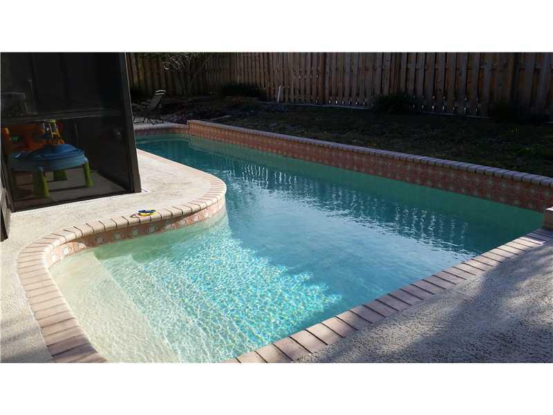 Beautiful home with updated kitchen, stainless appliances*living room has glass french doors, could be large 4th bedrm*family rm leads to large screened & covered patio overlooking sparkling pool*