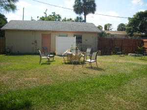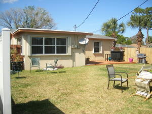 A wonderful rare find with no HOA on a huge totally fenced double lot and a cottage too. The main house has 3 bdrs, 1 bath, new windows & storm shutters in 2010 and new central A/C in 2011. Flooring is mostly wood laminate; and tile in living room. Cottage is sweet & has 1 bdr and living area. Room for Kitchen and a bathroom. Also in Cottage separate laundry area with a full size washer and also a separate work shop area. Truly a great find and fun to view. A Treasure! Priced right to allow for extra bathroom. Hurry...