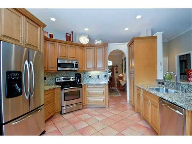 Perfect four bedroom home with split bedroom plan. Accordion hurricane shutters, Beautifully remodeled kitchen 42" wood cabinets, granite and stainless appliances with all the bells and whistles. Large backyard room for swing set and play facing the sou th with lots of privacy and quiet. Brick paver driveway and patio, raised spa, large overhang with fans and outdoor speakers. Tiled thru-out, 10ft flat ceilings, Built in office, tasteful paint tones, crown moldings, plant shelves, hi hats. Its a gem!