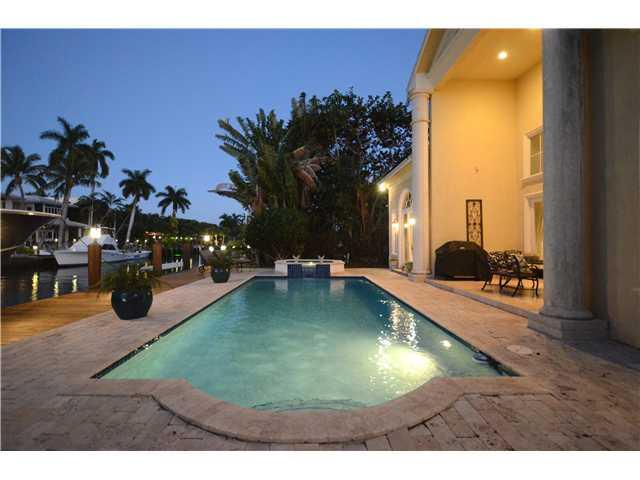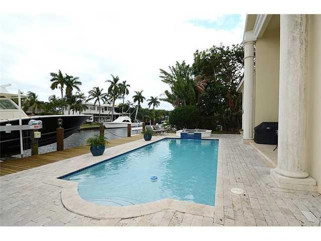 Gorgeous waterfront home with Marble floors, soaring ceilings, stunning fireplace. Kitchen designed to meet every need, top-of-the-line appliances, gas & electric ovens, wine cooler,espresso machine. Large Master suite with private office/gym. Secondary bedrooms & baths upstairs. NEW boat lift & dock. Extra garage bay for storage. Neutral decor, completely move-in condition. Located close to intracoastal for quick ocean access. Walk to beach, restaurants & shops of Las Olas. The ultimate in S FL living!