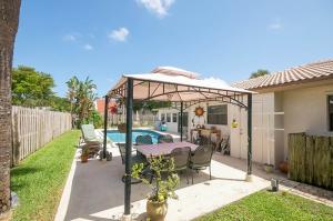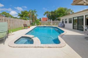 True 4 bedroom, 3 full bath home! Updated POOL home with over quarter acre of land, located in east Boca. Over 2400 liv sqft under air, this split bedroom floor plan home offers granite kitchen,(Stove vents to outside!), tumbled marble backsplash, LG & GE Stainless Steel appliances, large tile on diagonal thru-out living areas and florida room plus wood in bedroom. Hurricane rated,insulated new garage door. 2005 AC, Ductwork 2010. 10' deep Salt water pool, re-marcited 3 yrs ago PEBBLETECH. GENRAC breaker system w generator transfer switch, 80 GAL HWH, cypress ceiling in kitchen, sprinkler system w reclaimed water. SHUTTERS. Huge fenced yard, Gazebo. WOOD Burning fireplace, new chimney. Exterior recently painted. 8x10 Shed conveys as well. Close to I95/turnpike, close to beach/downtown