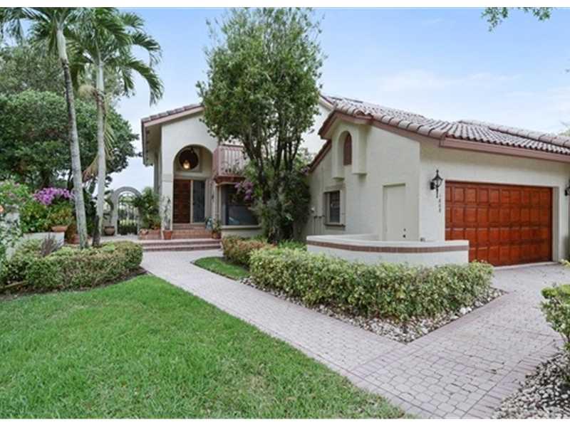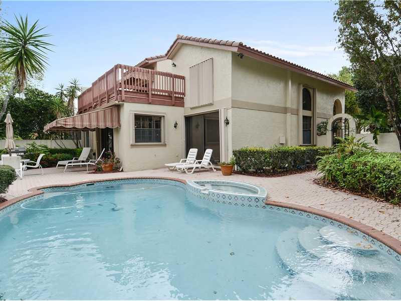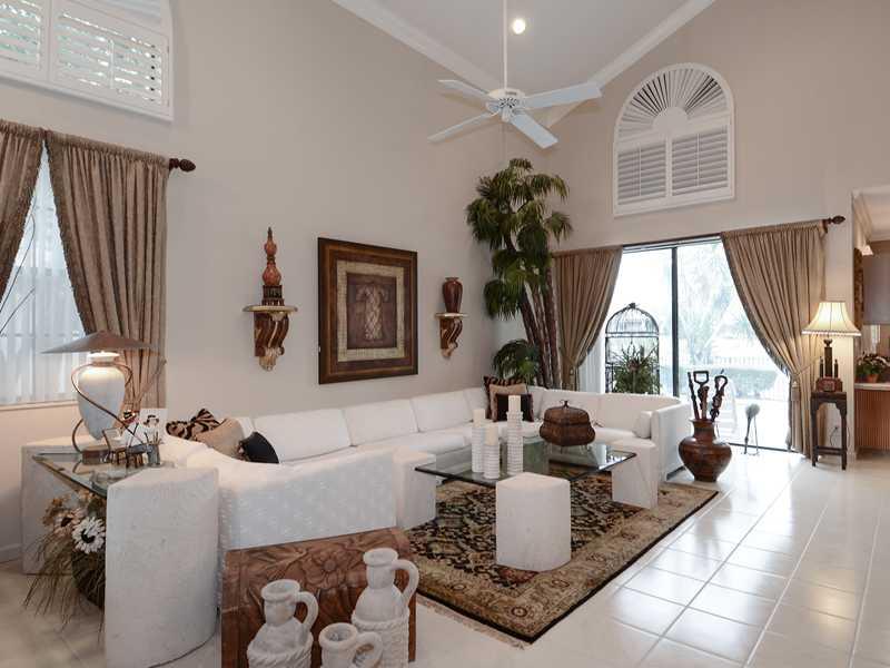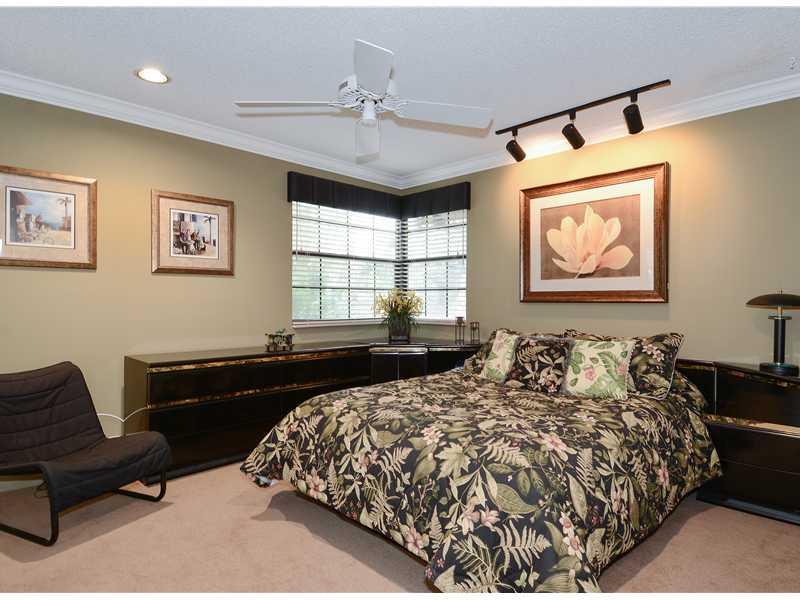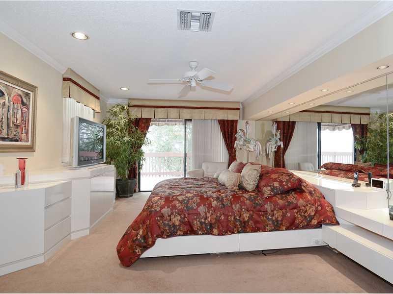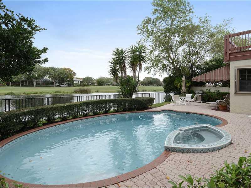 Million dollar views of wide flowing waterway, rolling greens & estate homes on other side. Architecturally unique. Newer roof, accordion & panel hurricane shutters. Timeless contemporary soaring ceilings and arched clerestory windows. Large private pave r patio, full size pool, romantic balcony with new deck and new awnings. All wood kitchen, granite, and tumbled marble. All bedrooms en-suites, private full bathrooms. Rich decor & crown moldings, tons of closets, and large laundry room.