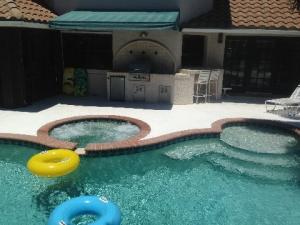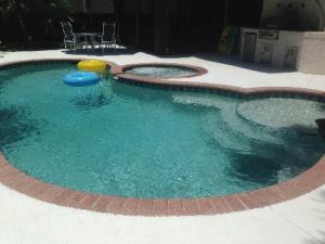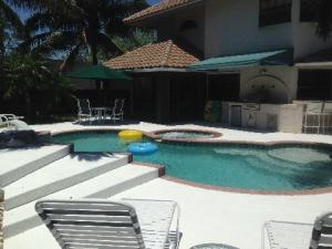 Mediterranean 2 Story, 4 Bedrooms 2.5 Baths (3BR's up & 1BR down), Lg Utility Room, Kitchen with Oak Cabinets & Breakfast Area open to Fam Rm with Fireplace, Formal LR & DR, Alarm, Volume Ceilings, Great Open patio with Freeform Pool & Spa Fenced Yard, Great Curb Appeal, Barrel Hurricane Shutters & Garage Door, Owners have maintained this Former Home of the Month model! Easy to Show ** This is a Short Sale and contract subject to third party approval.