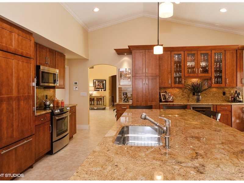 Southfacing point water lot. Totally updated & upgraded. 180' degree wide water views from all living & master bedroom. Hi end Stone on Steel newer roof with warranty. Accordion shutters, impact doors, heated pool. Gorgeous wood, granite, stainless kitche n & wall unit. Breakfast nook built-in, custom window treatments, hi end remodeled master bath & powder rooms, cathedral ceilings, crown moldings, 16"porcelain tile. Fenced yard, circular drive, specimen palms, built-in office. AND MORE! Run,Don't walk!