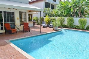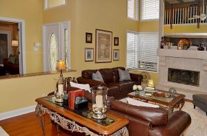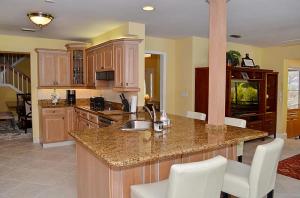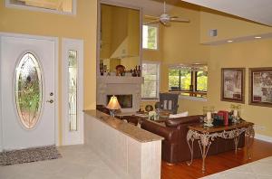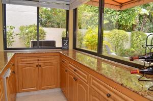 Pristine updated two story extended Dominica model. Shows beautifully! Generous floor plan includes family room, eat in kitchen & upstairs loft area. Formal living room & large separate dining room. Beautiful tile flooring, volume ceilings, floor to ceiling fireplace & step down wet bar. Gorgeous updated granite kitchen w/Kraftmaid cabinets, breakfast bar, wine cooler, pullouts & stainless appliances. Full BR/bath down. Spacious master suite offers updated bath w/dual sinks, separate commode & bidet & custom walk-in closet. Tropical lushly landscaped courtyard entry leads to oversized patio & pool perfect for added outdoor living space. Professionally landscaped & very private backyard area. 3CG. 24 hour manned gate, heated comm pool & spa. Walk to Greenwise Publix, restaurants & more
