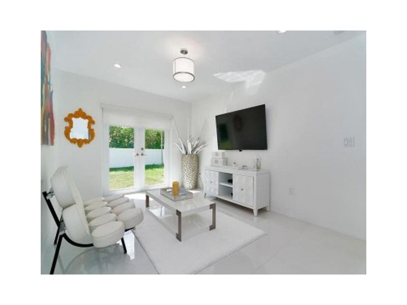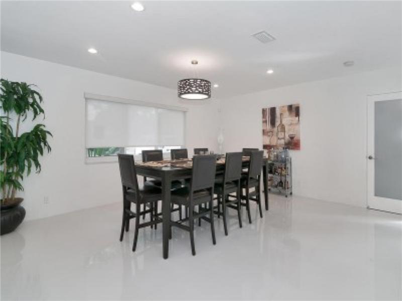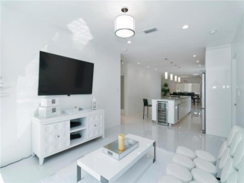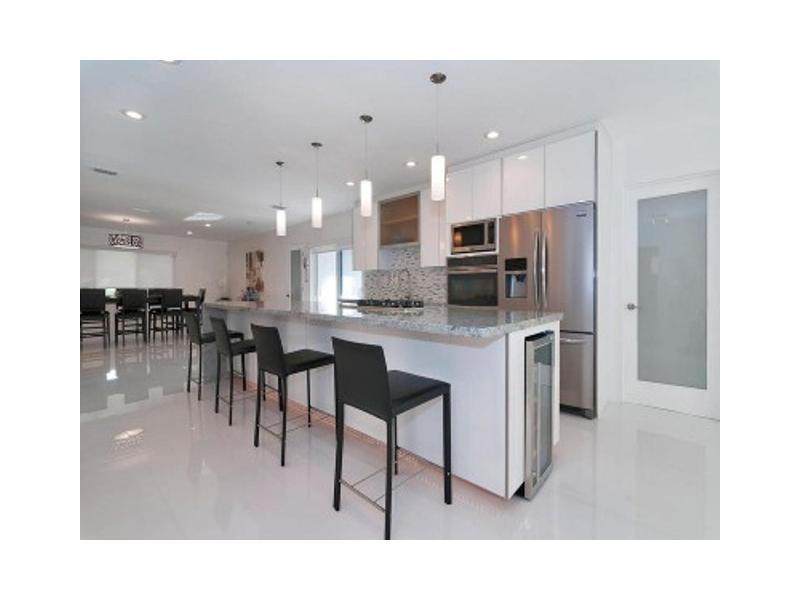 Home features an open floor plan leading to a custom built one of a kind kitchen with a 13 foot long marble top island with bountiful custom drawers and cabinets, glass tile back splash, 5 burner gas stove, built in led lighting and a built in wine cooler . Whirlpool Professional stainless steel appliances. Brand new Hurricane and Impact Resistant windows on every window and door in the house. Ultra sleek glass floor tile throughout house. House features a large Family room.