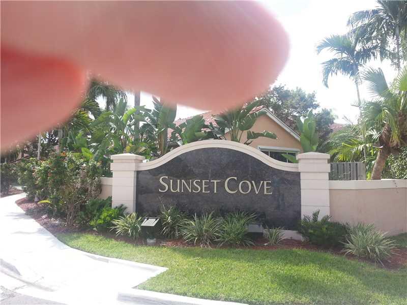 EXCELLENT LOCATION 2/2 +DEN LIKE 3/2 IN EXCLUSIVE SUNSET COVE GATED COMMUNITY NEW KITCHEN GRANITE COUNTERS,NEW APPLIANCES STAINLESS STEEL,NEW WATER HEATER.HIGH RATED SCHOOLS ,EASY ACCESS TO 595 TURNPIKE, SAWGRESS EXPRESSWAY. BEAUTIFUL TILE THROUGHOUT GARA GE HURRICANE PROOF LOVELY FENCED BACKYARD WITH PAVED PATIO WALK TO HOUSES OF WORSHIP ACROSS FROM PLANTATION PALM -$900,000 HOMES .HOUSE IN EXCELLENT CONDITION.