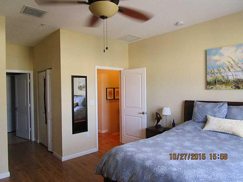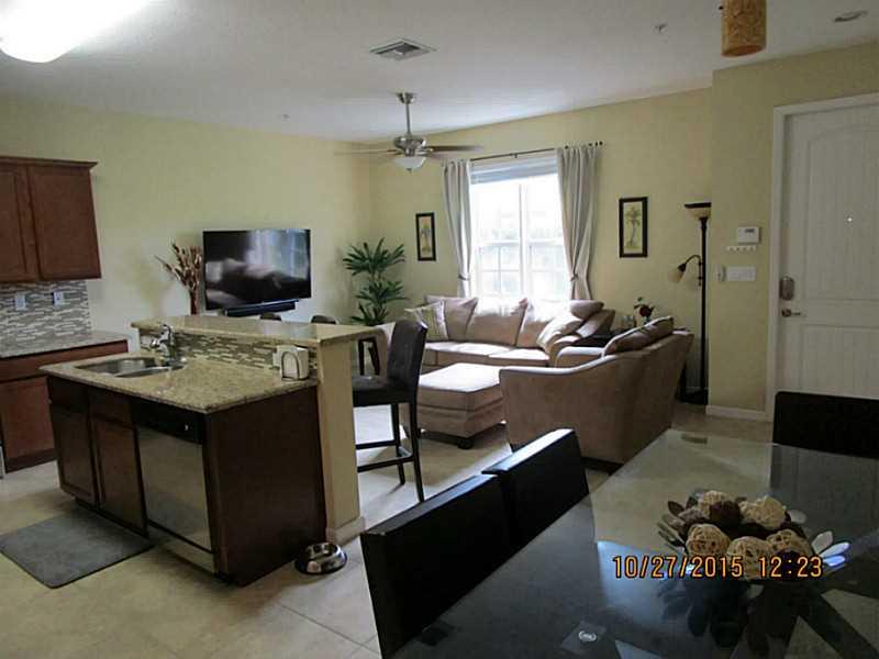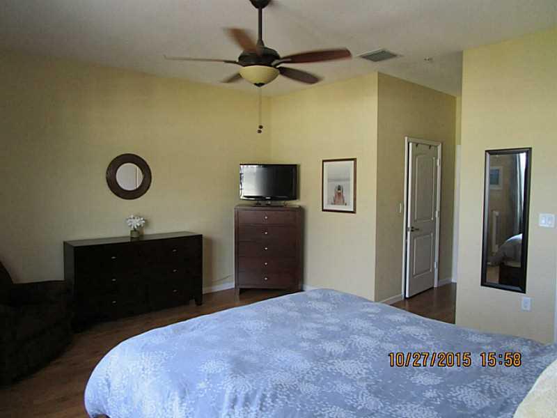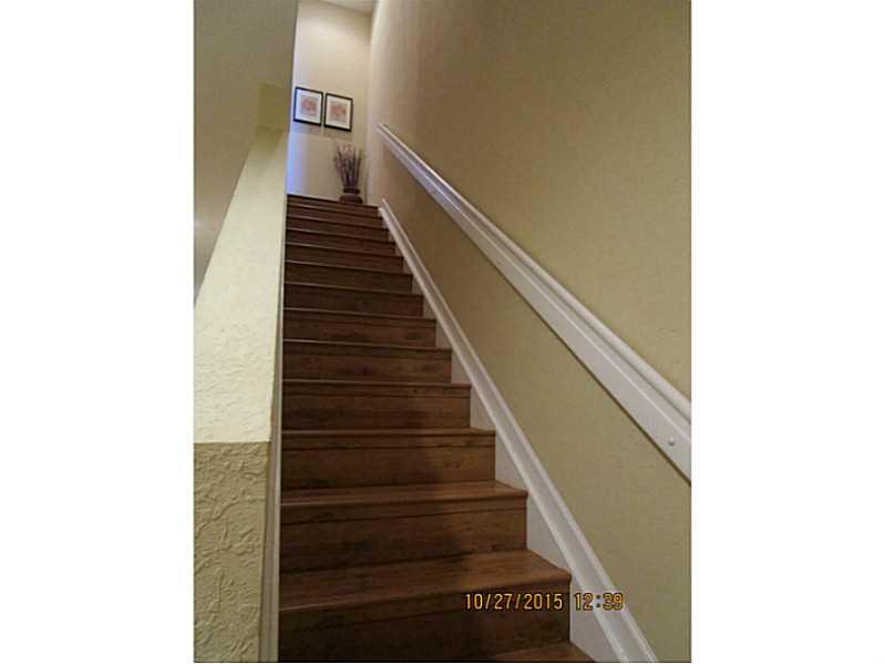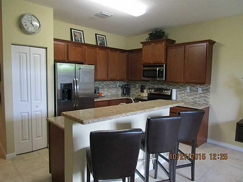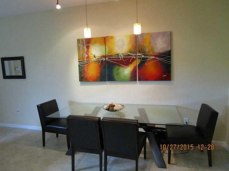 Spacious 3 bedroom, 2.5 bathroom townhouse built in 2014. Dramatic 9' ceilings, upgraded lighting, tile flooring on the first floor and laminate flooring on second level, granite kitchen counters, stainless steel appliances, marble bathroom counters, lar ge master bedroom with walk-in closet, master bathroom with 2 sinks, shower and separate water closet. HOA fee includes cable and internet service. Home is wired for ADT security. Community has a walking path, pond, pool, exercise room and club house.
