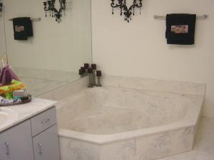 Beautiful 4 bedroom/3 bath pool home in boutique gated community of 38 homes surrounding a serene lake. High ceilings, skylights, tile and carpet flooring. Sliders open to lovely pool and private fenced yard. Downstairs: living room, dining room, family or breakfast room adjacent to large kitchen, inside utility, and a guest bedroom or den plus full bath. Upstairs: Impressively spacious master bedroom with 2 walk-in closets, generous master bath with tub and shower, two good-sized guest rooms and guest bath. Very livable home in great location. American Home Shield home protection plan.