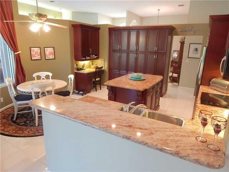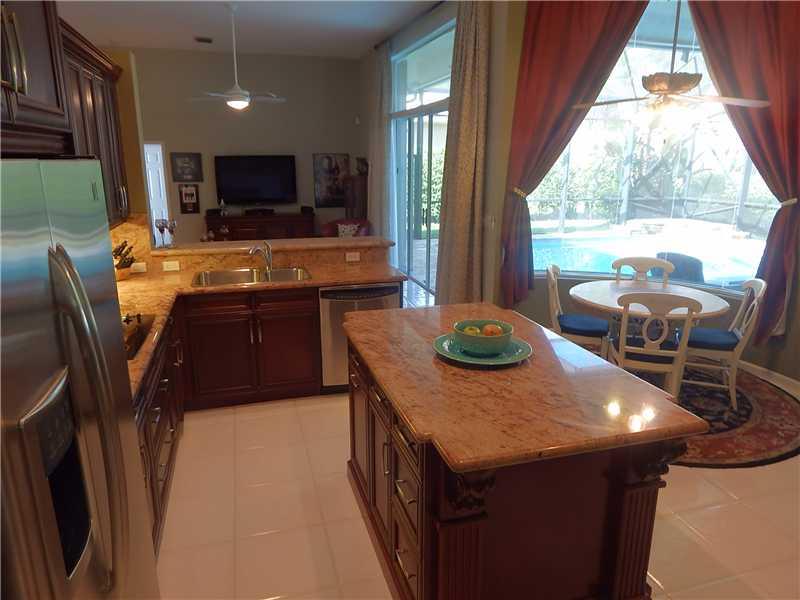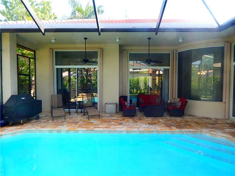 Pristine 6 bedroom/4bathroom home on a cul-de-sac street with a 3 car garage. Screened in patio with a great heated pool and travertine decking. It has a salt system. 3 way split with exquisite gourmet kitchen, granite, SS appliances, custom drapes, accor dion shutters and hurricane-rated garage doors. Recently painted exterior. Extra built in storage. Very private backyard - High School is Stoneman Douglas! This immaculate home is an unusual find. Schedule a viewing today.