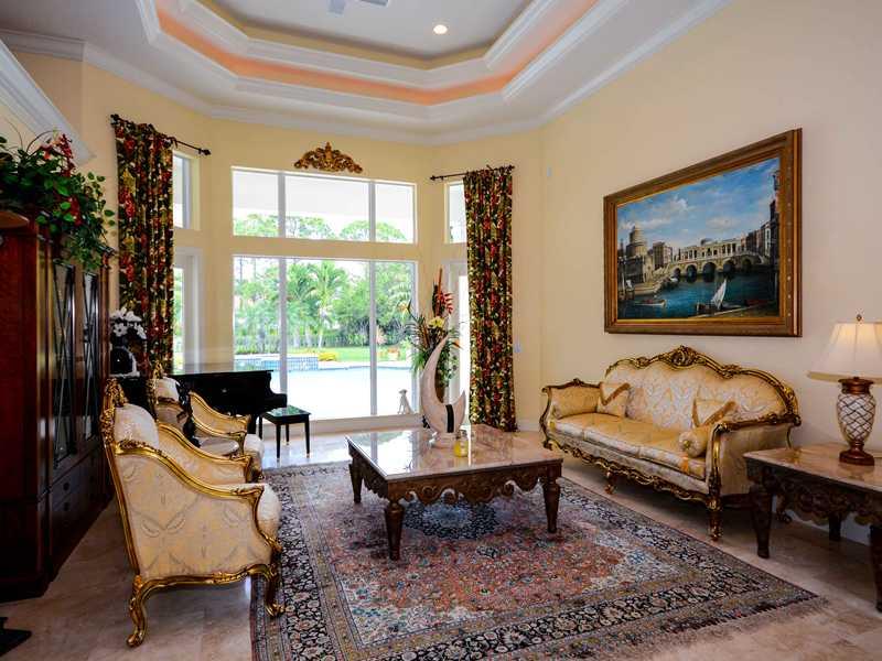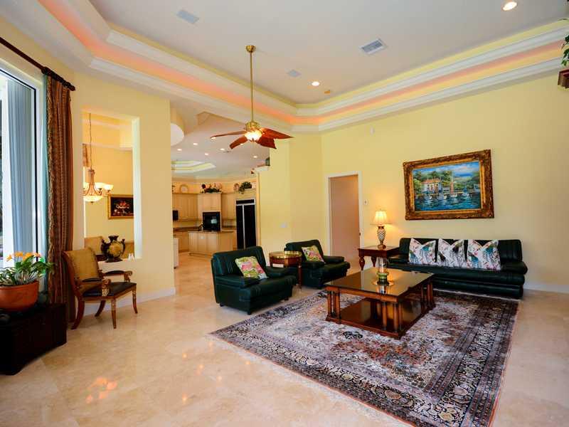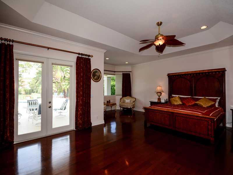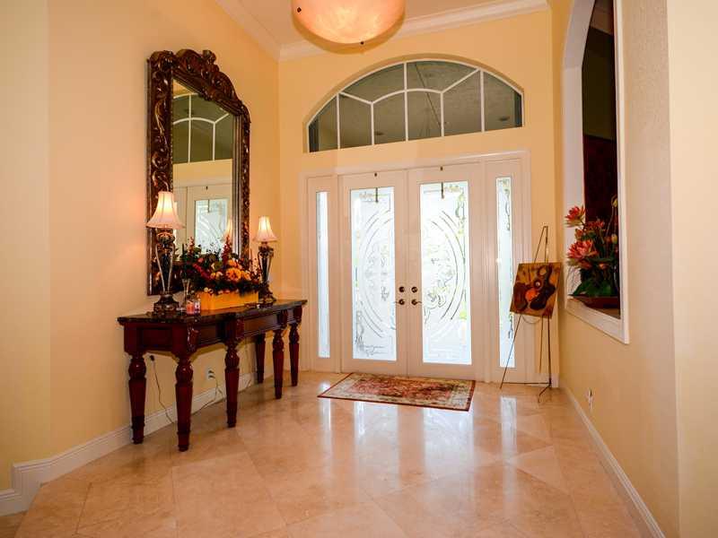 Remarkable 1.1 acre pool home in gorgeous Whispering Woods! This stunning home has the best of everything! Beautifully manicured, private landscaping with covered patios! Updated gourmet kitchen with top of the line appliances and finishes, marble floo rs, triple split floorplan, volume ceilings w/ 8' doors, 4 car garage plus storage room, ornamental crown modeling with double coffered ceilings, over sized paver driveway, sophisticated master bedroom & master bath, game room, & manned gated entrances!!