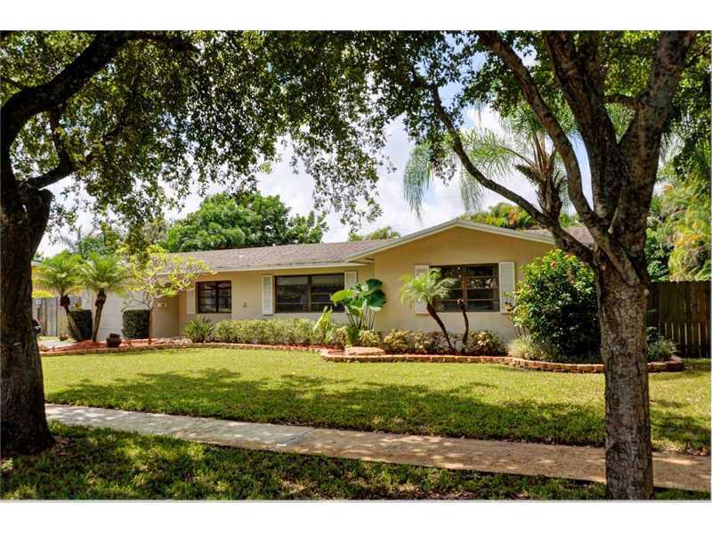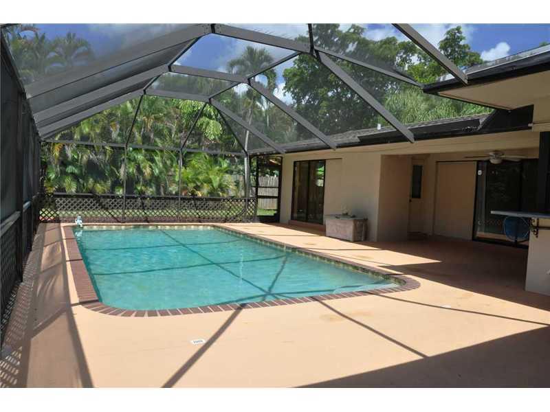 Beautiful split bedroom plan pool home w/oversize dome screened pool enclosure. 964 sq.ft. patio w/pass thru window to kitchen. Remodeled kitchen & bathroom, extra den(or family room),has laundry room. Living/dining room boasts nice oak hardwood floors & plantation shutters. Gorgeous landscaping w/fruit & palm trees. Fenced yard includes 12'x12' outdoor storage shed w/electricity. Steps away from the City of Plantation Woods water park, tennis courts, library and museum. No Home Owners Associations!