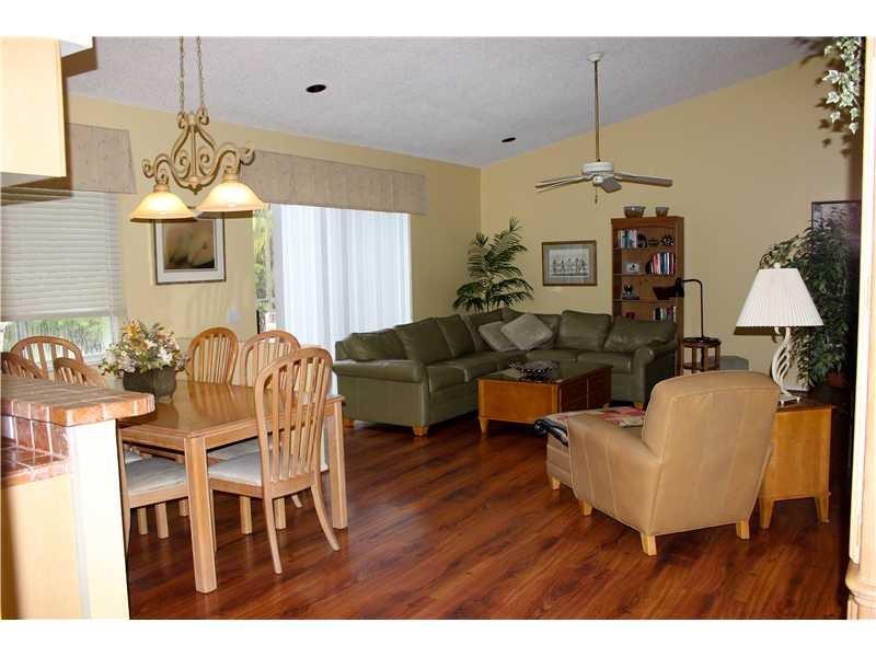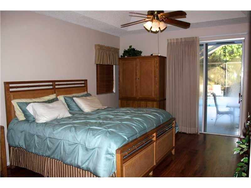 Modified 5 bedroom Belwood model features 4 full bathrooms! Centrally located, this small community is gated and within walking distance of shops and restaurants in the Town Center. Laminate wood flooring in most of the living areas with tile in two of the bedrooms. Roof is only 6 years old. Master bedroom has 2 walk-in closets. Master bath w/dual sinks, roman tub and separate shower. Upgraded kitchen with tumble-stone marble countertops and backsplash. Huge screened patio. Fridge in garage excluded