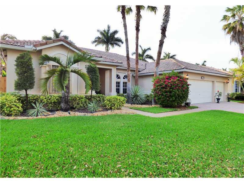 WELCOME TO AN IMMACULATE & UPGRADED 1 STORY, CARLTON MODEL HOME, WITH 4BEDROOMS, 3BATH & 3CAR GARAGE. OVER 10,000 Sq. Ft. LOT. SPACIOUS KITCHEN W/CENTER ISLAND & GRANITE COUNTERTOPS. CERAMIC FLOORS THROUGHOUT THE MAIN LIVING AREAS & BEAUTIFUL LAMINATE FLO ORS IN BEDROOMS, CROWN MOLDINGS, FRENCH DOORS, ACCORDION SHUTTERS IN WINDOWS & DOORS, NICHES & DECORATORS TOUCHES, MASTER BEDROOM W/SITTING AREA AND A BUILT IN OFFICE, MASTER BATH. W/ WALK-IN SHOWER. PRIVACY WALL W/NO BACK NEIGHBORS. SHOWS FANTASTIC.