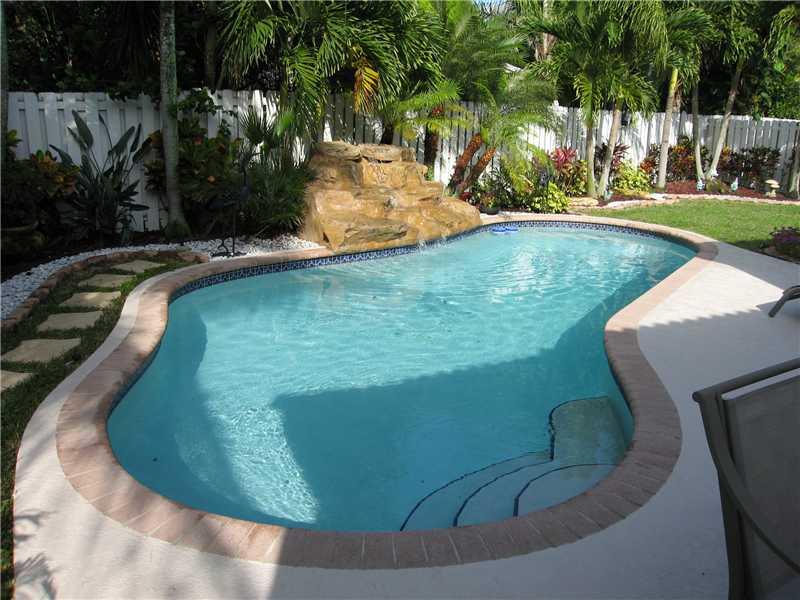 Gorgeous and updated pool home with a private tropical yard! Freshly painted, crown moldings, laminate wood floors in all bedrooms, hallways, family room, living & dining rooms. Newer Stainless Steel appliances in kitchen, granite counter tops. Remodeled bathrooms & decorator light fixtures. Fenced back yard with open pool, covered patio & rock waterfall into pool. Built-in garage cabinets. Hallway granite ledge. Fountain in front yard. A/C replaced 2013. New baseboards! Shows like a model!