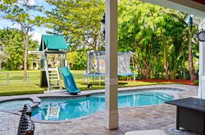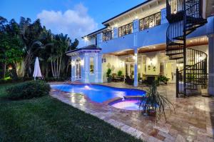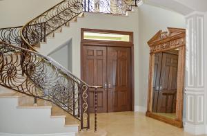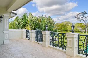 Extraordinary Boca Raton home custom built in 2007 with great attention to detail and no expenses spared. With 4 bedrooms, 4 full baths, 2 half baths & an office, the magnificent home over looks a serene park. Fabulous curb appeal with marble motor court,front porch & balconies with custom designed wrought iron railings. Interior features include travertine marble & Brazilian cherry wood floors, extensive crown moldings, deep baseboards, coffered ceilings, arched door ways, recessed lighting, surround sound, elevator & more! The living space is very open, light & bright. A custom designed wrought iron banister with nautical shell design graces the marble staircase. The well placed office has double French doors leading to the front porch & secure fireproof closet.