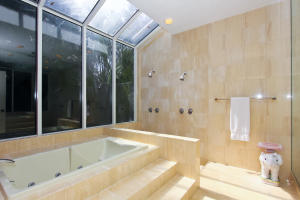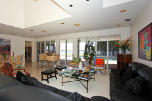 Exclusive Presidential Estates Lakefront home on a peaceful, quiet cul-de-sac with beautiful waterviews from every room. Lush tropical landscaping. 4 bedrooms, 4 + 1/2 bathrooms. Large eat-in kitchen adjacent to media room. Spacious sun filled (sky light) living room/ dining room. Heated pool w/ gas BBQ grill. Huge master bedroom suite (1st floor) includes sitting area, walk in closet, separate shower & Jacuzzi tub (w/ sky light and private landscaping). 2nd floor includes guest bedrooms each with ensuite bathrooms and open office/ studio. 2 car enclosed attached garage.