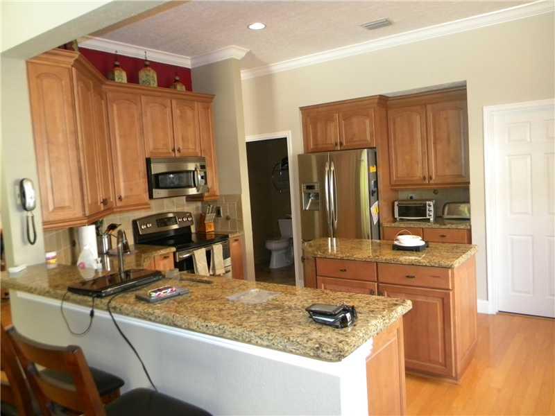 Absolutely Model Perfect w/Extended- Covered front porch option. Very Open Floor plan. Totally updated inside. Kitchen has beautiful Wood Cabinetry, Granite, S/S Appl, Knockdown (Textured) Walls & Ceilings, Crown Moulding thru out, Real Hardwood Floors en tire home, w/laminate only in guest bedrooms (4th br is den). 2006-New Heated Salt wWter Pool w/pavered deck/covered back porch. Fenced corner lot next to green space - Island Cul-De-Sac. 2010-New Hi Eff A/C. All fans/light fixtures included. EZ to show.