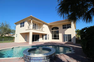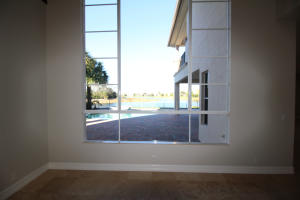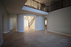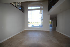 Spectacular waterfront home in this beautiful Toll Brothers community. Impressive two-story foyer & living room with floor to ceiling windows offering panoramic lakefront views. Dramatic staircase with bridge & loft overlooking living room. Saturnia Marble floors floors 1st level, expanded dining room with coffered ceiling , guest bedroom & study with view of pool. Gourmet kitchen with breakfast area, center island, double oven, walk-in pantry & granite countertops. A 2nd staircase offers quick & easy access to family room & kitchen from the master suite side of house. Spacious master suite with coffered ceiling, French doors to covered balcony, two walk-in closets & luxurious bathroom. Relax on the two story covered lanai, while swimming in the free form pool. Split 3 car garage.