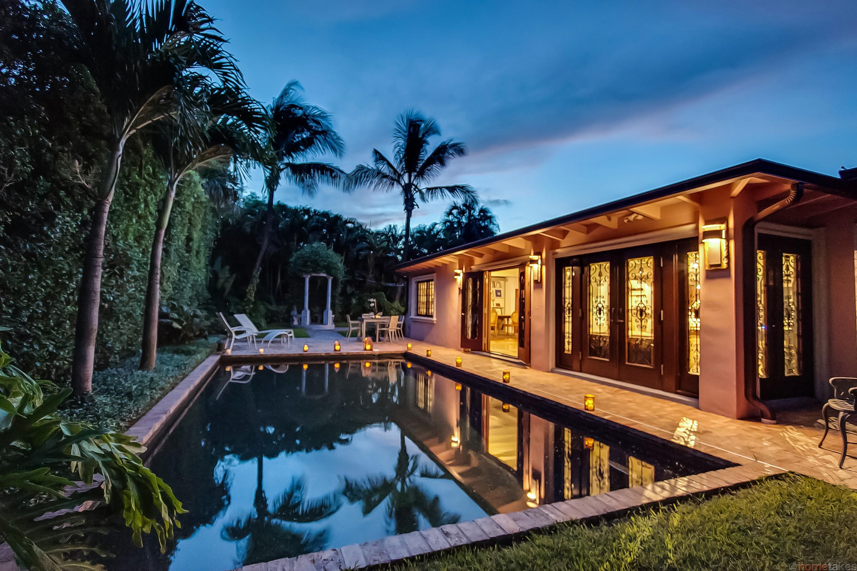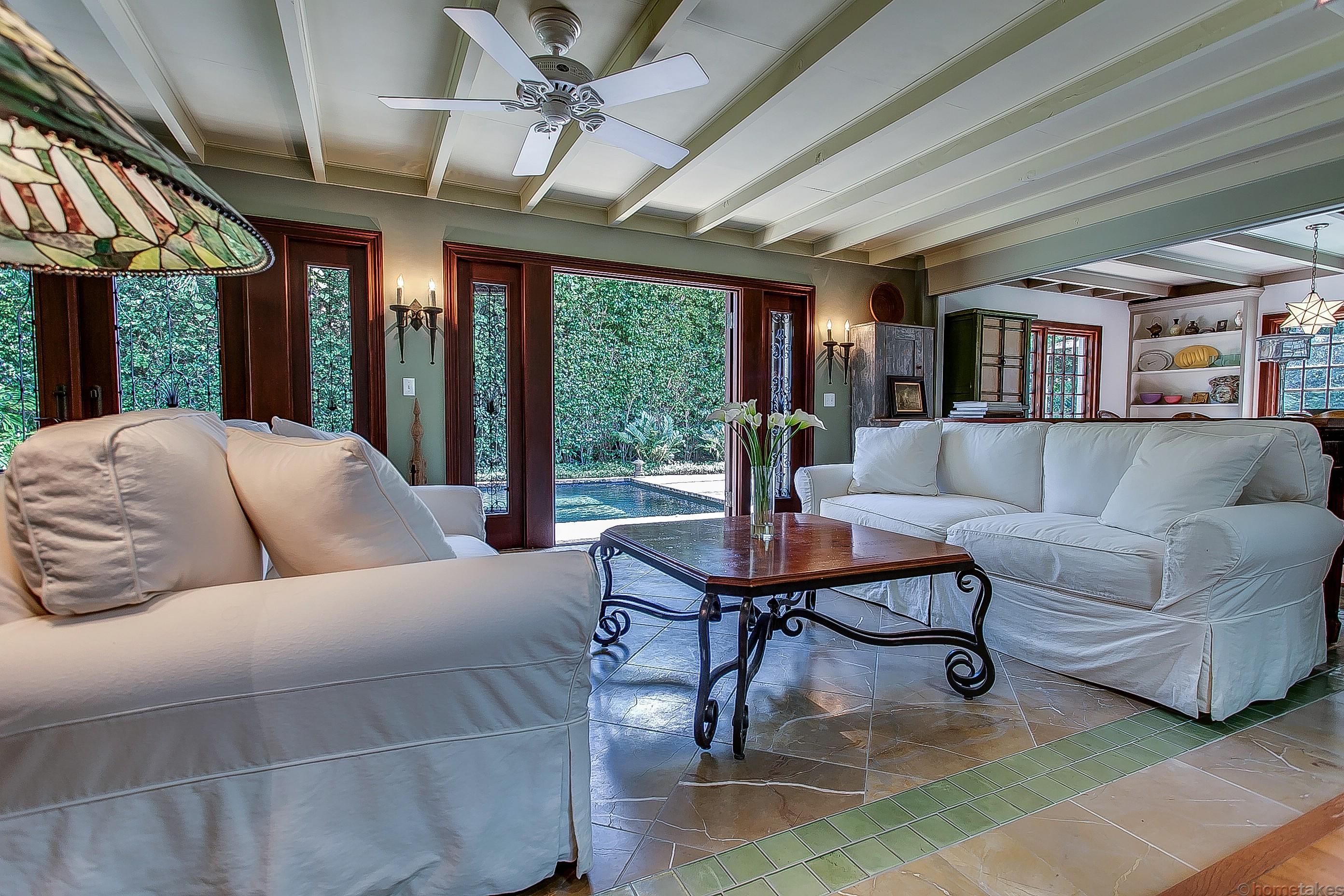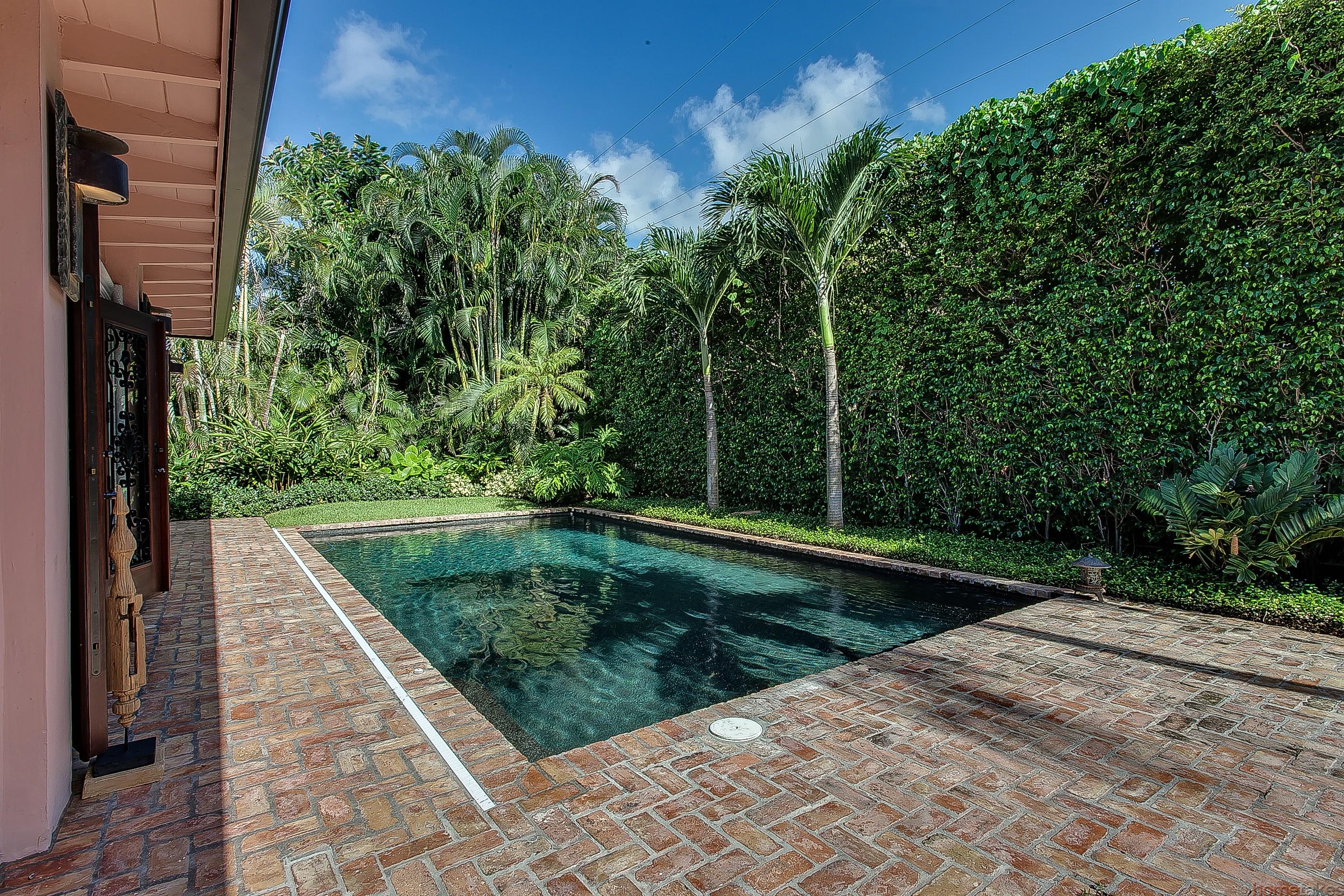 Sophisticated Artist's retreat with major renovations including hardwood floors, roll down shutters for French Doors leading to pool patio. Imported carved doors, contemporary Baths, Chef's Kitchen with in industrial fridge & wine cooler, tiled loggia, impact windows, French doors to pool & gardens. Close to ocean and lake trail.