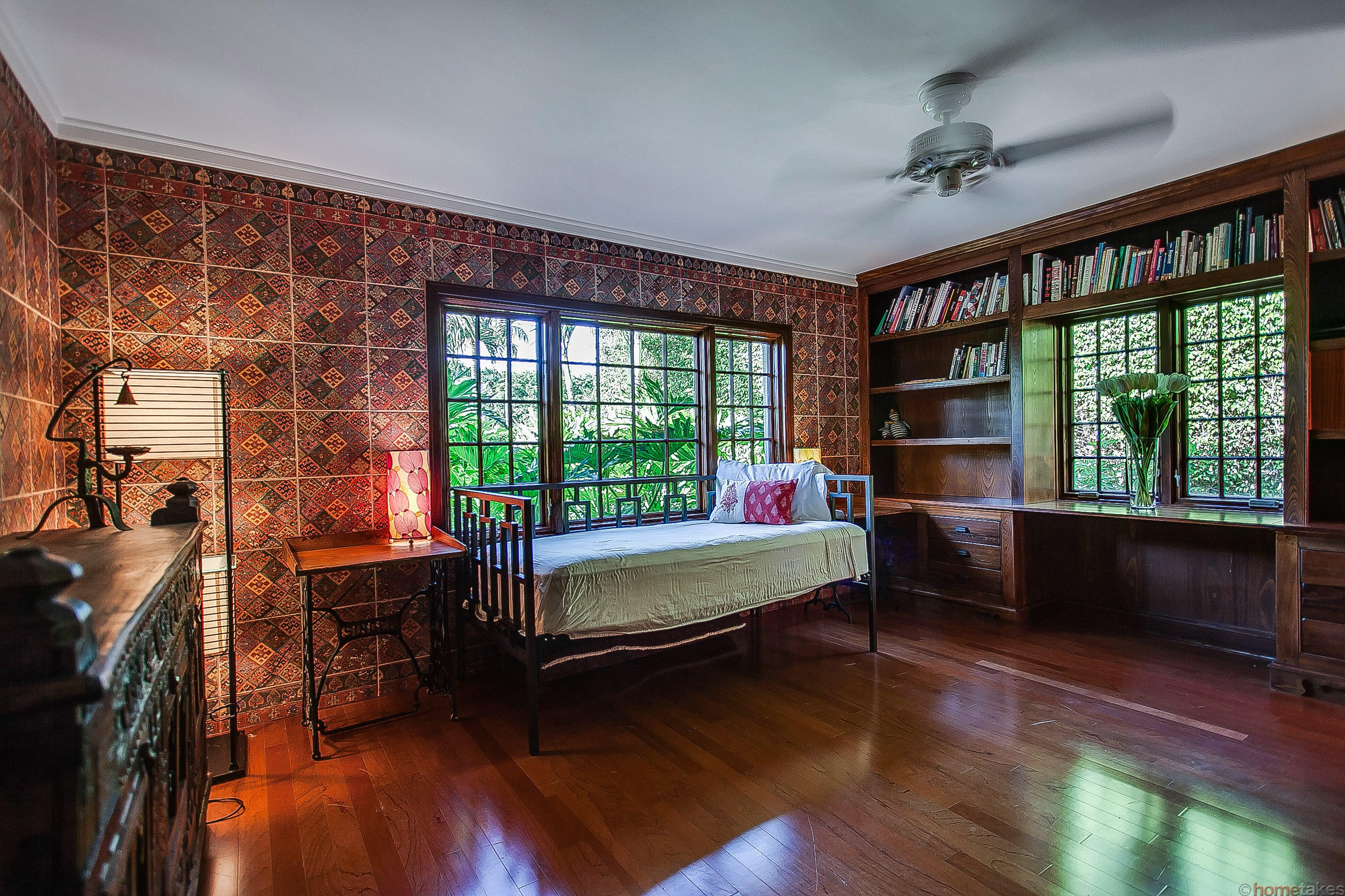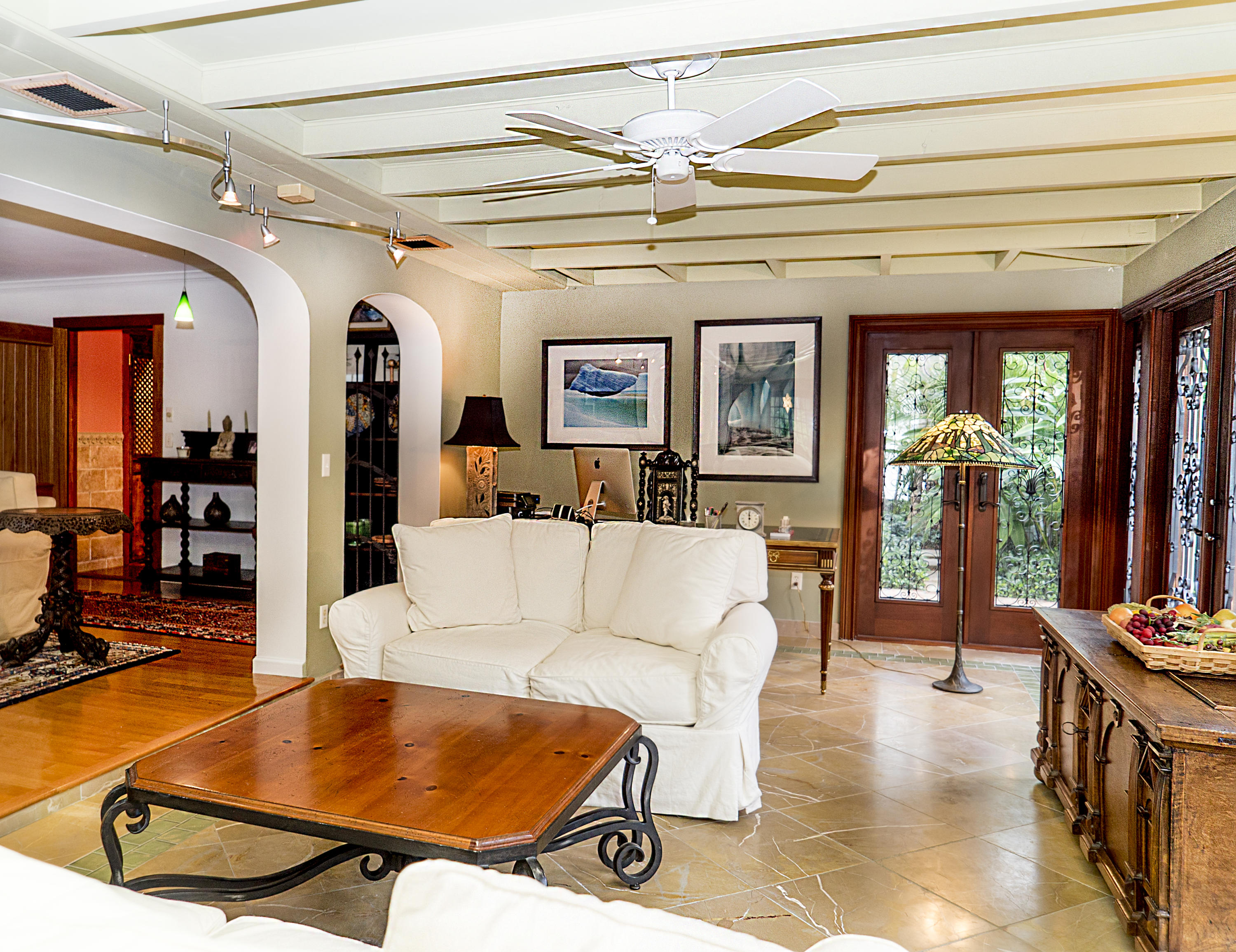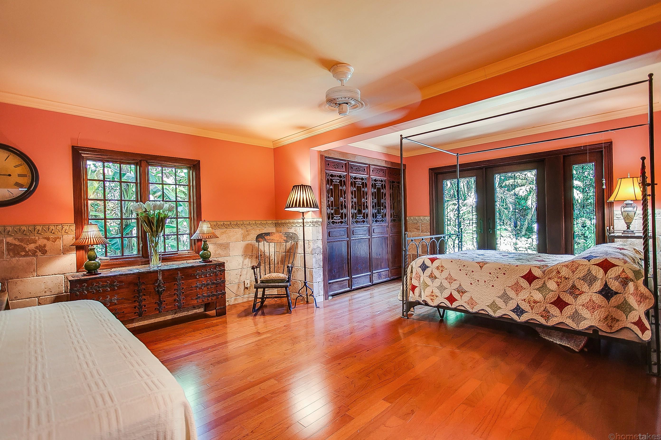 Sophisticated Artist's retreat with major renovations including hardwood floors, roll down shutters for French Doors leading to pool patio. Imported carved doors, contemporary Baths, Chef's Kitchen with in industrial fridge & wine cooler, tiled loggia, impact windows, French doors to pool & gardens. Close to ocean and lake trail.
