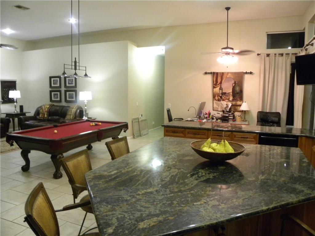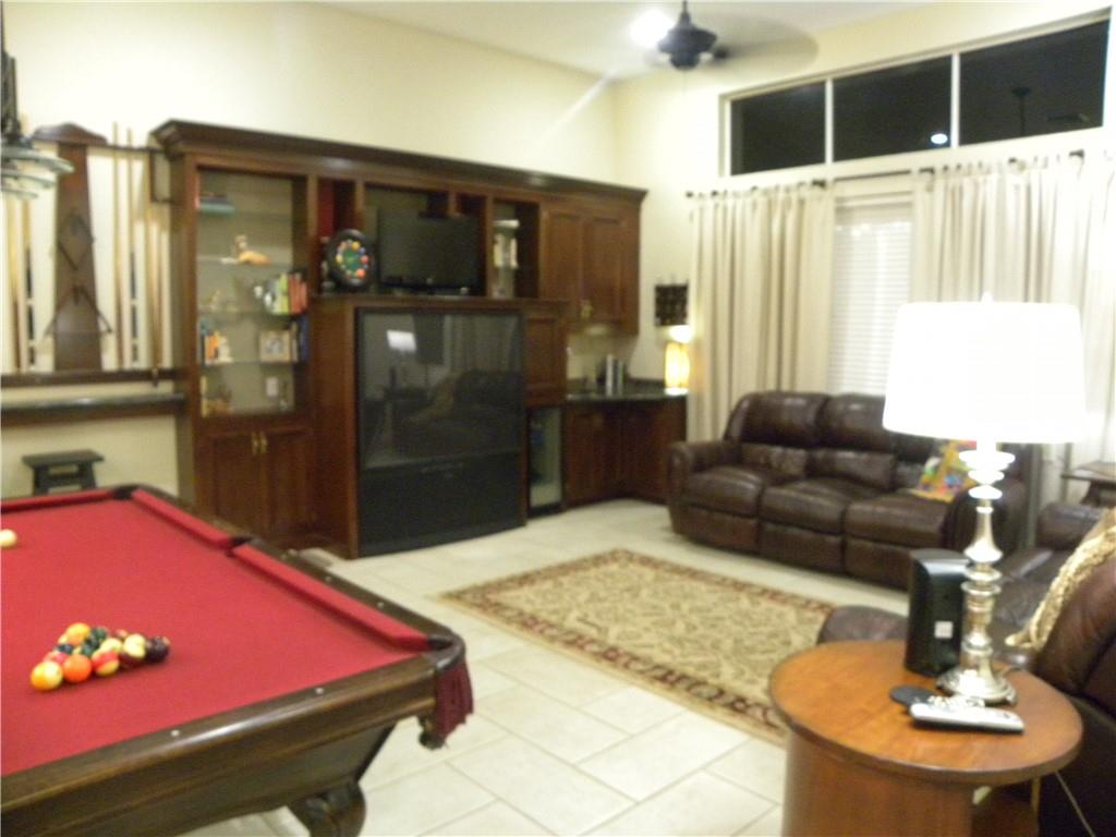 Spectacular custom enlarged home. Pool & Lake. Built in wet bar/TV/custom cabinet area. Pool table & granite custom area. Living rm has custom built in TV area w/ceiling to floor bookcase. Kitchen design 42" upper cabinets, w/beautiful granite unique se ating. Entire home was enlarged by 4 foot. Extra large bedrooms w/ Jack & Jill bath. Separate office off master bedroom. (or 5th bedrm) Built in workbench with above tool storage. Brick paver driveway & back patio/pool area overhang extended 4 foot. .