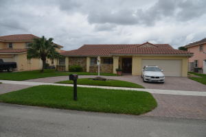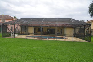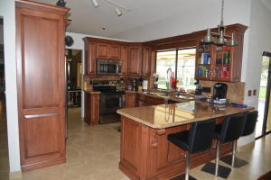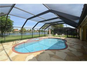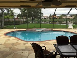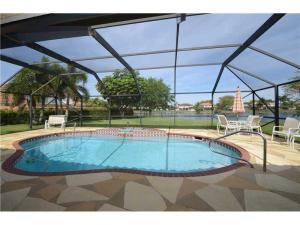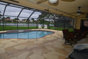 Spectacular lake and pool view from this updated and spacious home!! Located in desirable Falcon's Lea; Gorgeous remodeled kitchen with wood cabinets, granite countertops and backsplash, stainless steel appliances; beautiful tile floors throughout; large master suite with updated bath; updated light fixtures and ceiling fans throughout; large family room; huge covered and screened patio; pool and heated spa; large fenced in yard; accordion shutters. HOA $350 ANNUALLY.