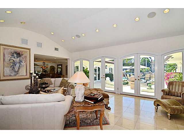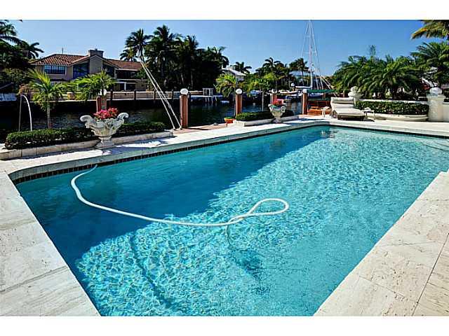 GORGEOUS year round entertainment house!!Fabulous 3 BDRM 3 Bath 2 1/2 baths courtyard style floor plan opens onto spectacular outdoor living area - pool,hot tub & summer kitchen!Dock your yacht on deep water 100' dock -only minutes to ocean w/NO fixed bri dges!Impeccably maintained residence w/lush tropical foliage framing entire home!Botanical haven!!Exquisite interior features: marble flrs,crown moldings & 13 sets of arched French doors. Gourmet kitchen ajoins family room. His AND hers master bathrooms.