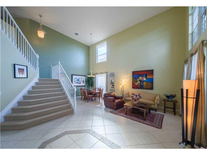 Spectacular lake views from this beautiful 4 bedroom + den + loft home in 24/7 gated community w/ clubhouse & pool. High volume ceilings in the living & dining rooms. Beautiful wood kitchen cabinets with center island & double wall ovens. Enjoy your morni ng coffee overlooking the peaceful lake from the breakfast & family rooms. The master suite is located on the 1st floor & 3 bedrooms/2 baths plus den and loft are located on the 2nd floor. Paver covered patio & open pool with fence. Excellent condition!