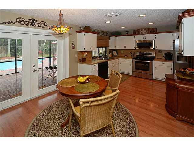 BEAUTIFULLY UPDATED HOME FEATURES WOOD LAMINATE FLOORS THROUGHOUT!SPACIOUS KITCHEN W/ TUMBLE MARBLE BFAST BAR & S.S. LG RANGE, MICRO, & REFRIGERATOR.FRENCH DOORS, UPGRADED BASEBOARDS & MOLDINGS,SURROUND SOUND IN & OUT & SOME IMPACT WINDOWS!2010 4 TON TRA NE 16 SEER SYS A/C(NEW DUCTS).ROOF '07. SPACIOUS BDRMS W/ BUILT IN CABINETRY CLOSETS.BATHROOMS REMODELED W/ GORGEOUS FINISHES.OUTDOOR PARADISE W/PAVERED PATIO, SELF CLEANING SALT WATER POOL & SEPARATE SCREENED PATIO PERFECT FOR ENTERTAINING.TURNKEY!