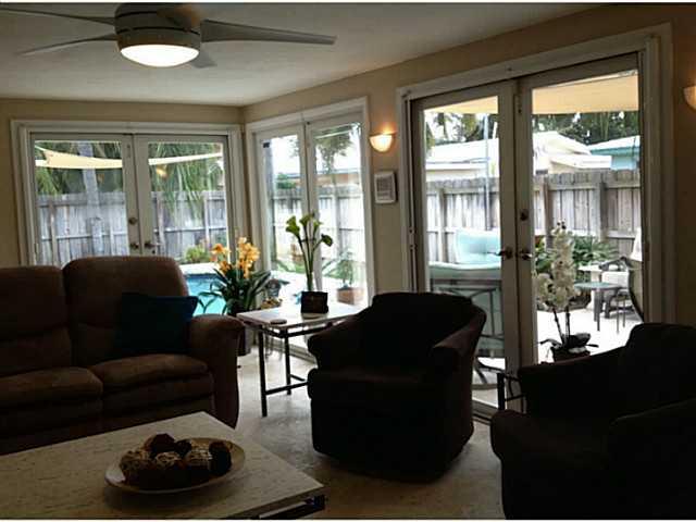 Open layout with spacious room sizes & preferred SE exposure pool area. Updates throughout include gorgeous kitchen with granite, stainless appliances & gas stove. Huge laundry room, limestone floors thru living areas and polished white terrazzo in bedroo ms. Two masters and cabana bath access from patio. Tons of light from French doors across the entire family room make this a cheery, easy entertaining home. Quiet neighborhood with good schools, parks and hospitals. Excellent, move-right-in condition.