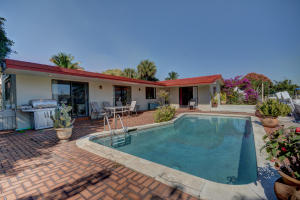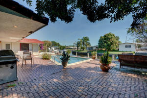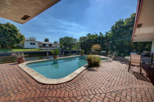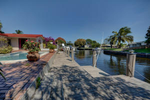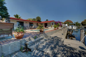 Amazing opportunity to own a 4 bedroom 2 1/2 bath home with ocean access. This gorgeous home is situated on a large lot with 92' waterfront, huge dock and boat lift. Beautiful brick paver deck surrounds serene pool. Enjoy the view of the pool and canal from the updated kitchen and eating area. This is a perfect home for entertaining with large living areas. The master bedroom has direct access to the backyard. Guests can spread out in their own wing with two bedrooms (one with direct access to back yard) and a bath. There is also a front bedroom with its own attached half bath.