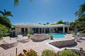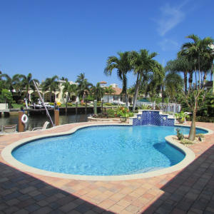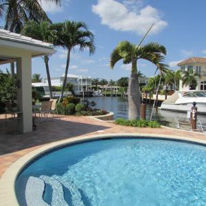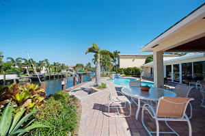 Beautifully extended and updated Ranch Style Home in one of the most desirable waterfront communities of Lake Rogers & boasts 4BD, 3Ba, 2CG, pool, on 80 ft of water with incredible basin views. Throughout the house is 18x18 tile, impact windows and granite counter tops in kitchen & baths. This home emits warmth and shows the meticulous care given. The newly pavered patio has a covered patio area with vaulted wood ceiling, ceiling fan and looks out to the free-form pool and beautiful landscaping. Home has been updated and a new addition of bedroom, large bright laundry room and bathroom added in 2011. Its a great entertaining home Just minutes to the Inlet by boat and a short walk to the Beach! Location, Location, Location!! Don't miss seeing this delightful and charming hom
