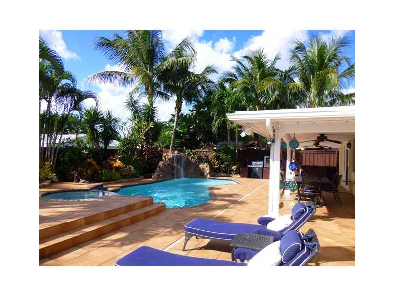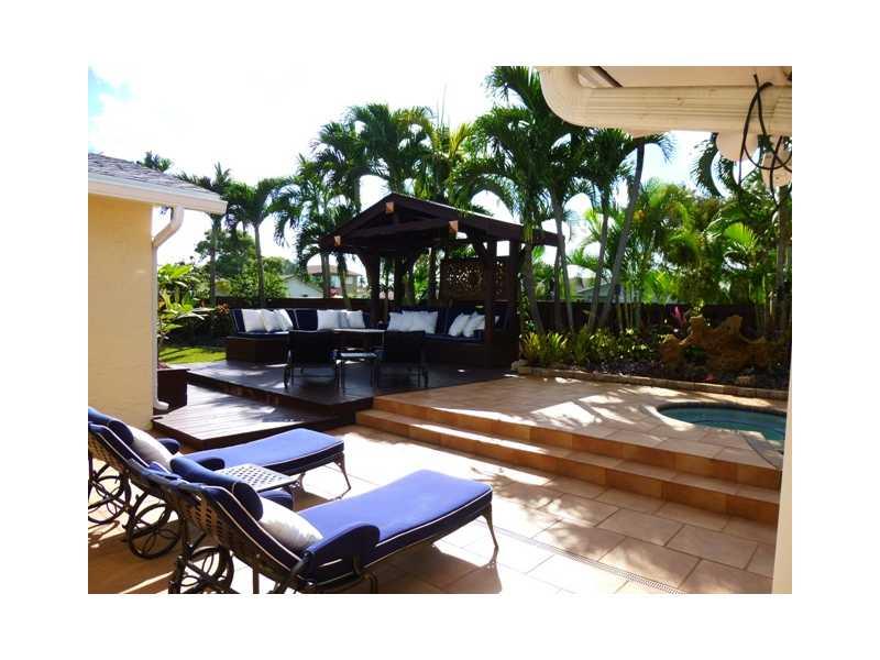 Rare Opportunity to own your own private oasis! 10000 sqft. private corner lot in Palm Aire Village. Extensive and complete interior & exterior remodel with relaxed contemporary style. Easy indoor/outdoor living. Resort-style backyard with heated pool, ho t tub, rock waterfall, cabana w/built-in custom upholstered seating & storage, tropical landscaped large yard w/landscape lighting, 3-zone timer sprinkler system on well-water, security cameras throughout, PGT impact windows and doors. New roof in 2014!