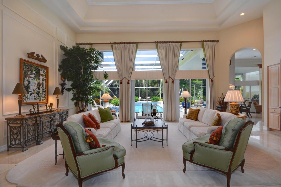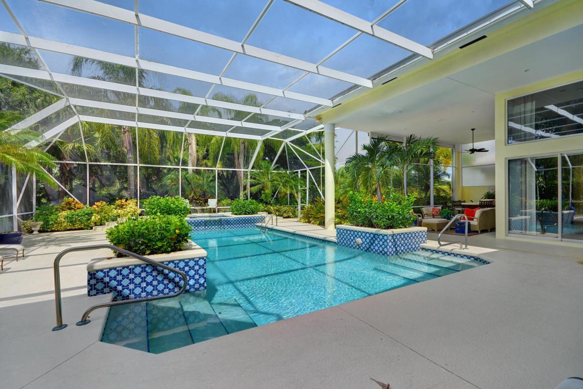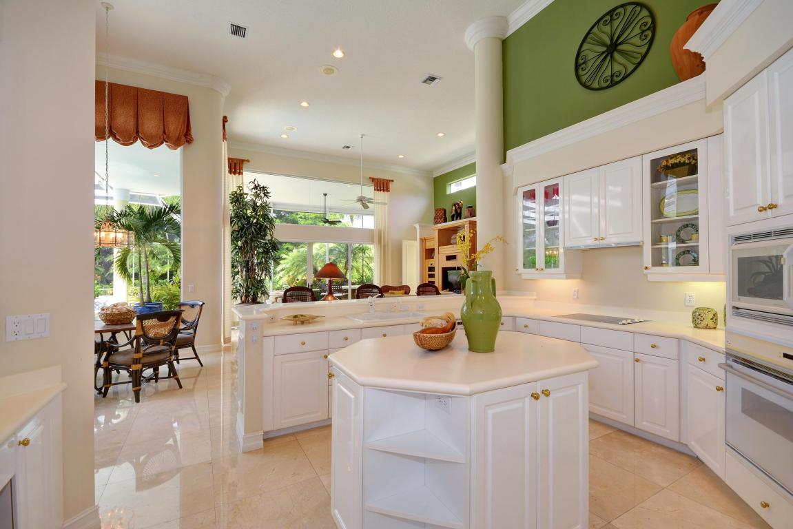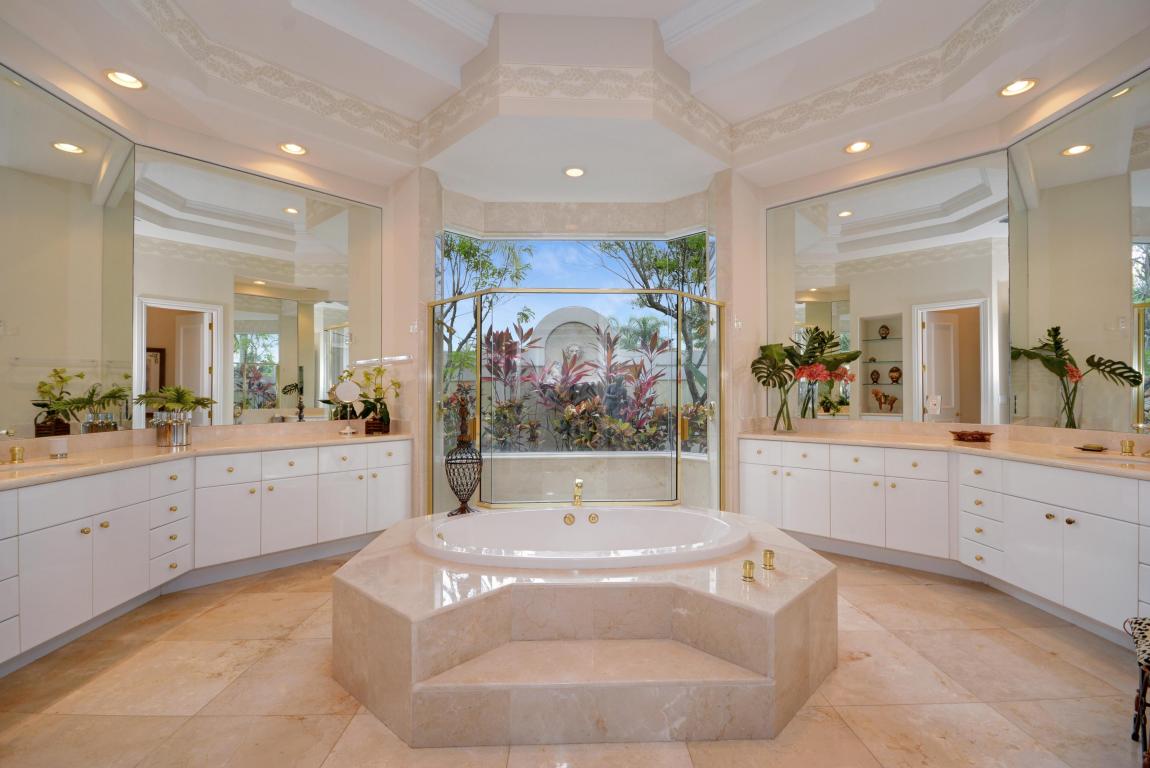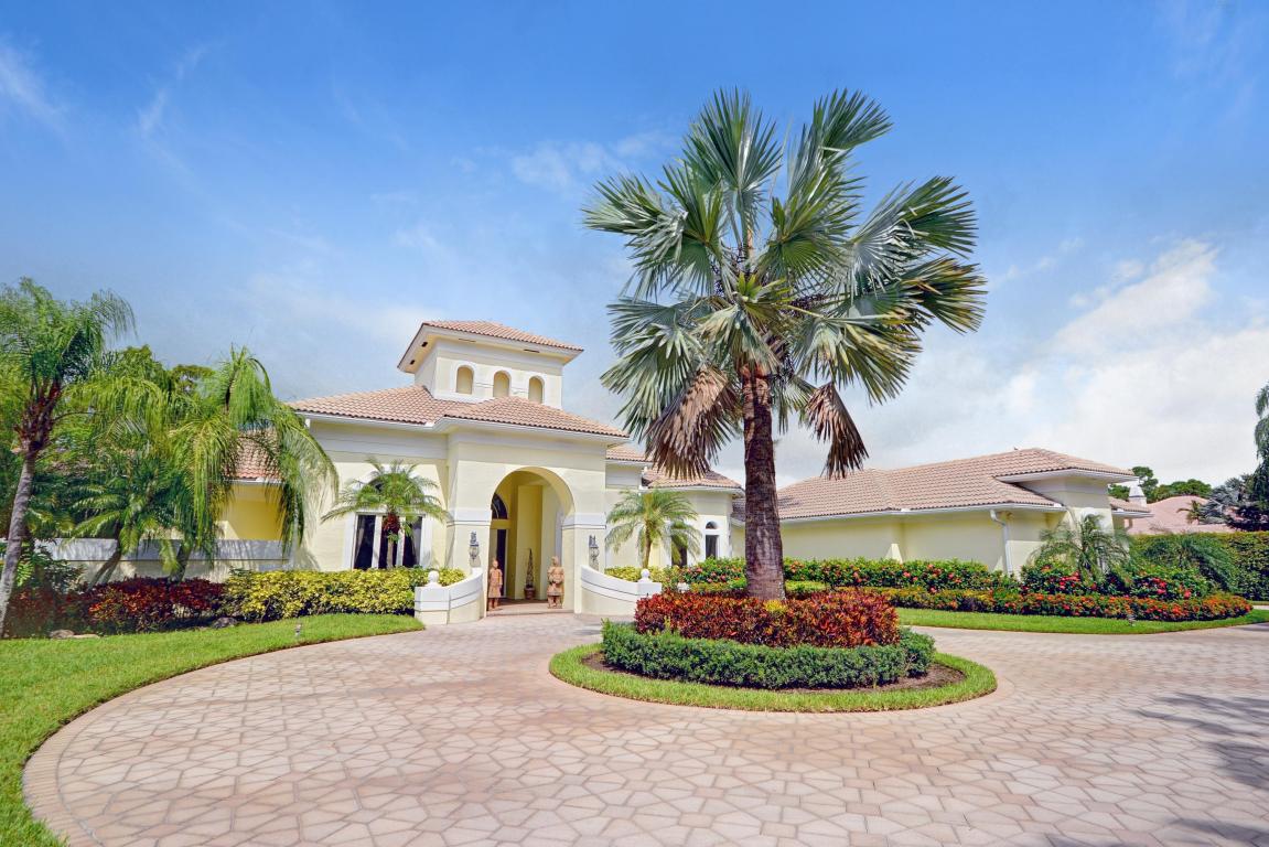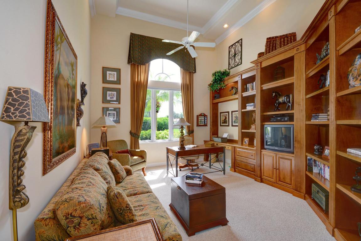Great opportunity--Serious seller and price just reduced! Enjoy Palm Beach County's best country club living at Breakers West in central West Palm Beach. Impressive estate situated on almost .75 acre corner lot on private gated street nestled along Breakers Rees Jones golf course. Circular driveway welcomes you to this stately 5BR + Library, 6 BA, 3-Car plus Golf Cart Garage home with over 5,000 sq ft A/C Liv Area. Popular open floor plan with tasteful coffered ceilings, crown molding throughout, & marble flooring provide the perfect backdrop for any decor. Formal living room with 3 set of doors w/transom windows above opens to spacious screened pool and patio area. Handsome library features floor to ceiling built-in bookcase in rich wood tones and has adjoining full bath.