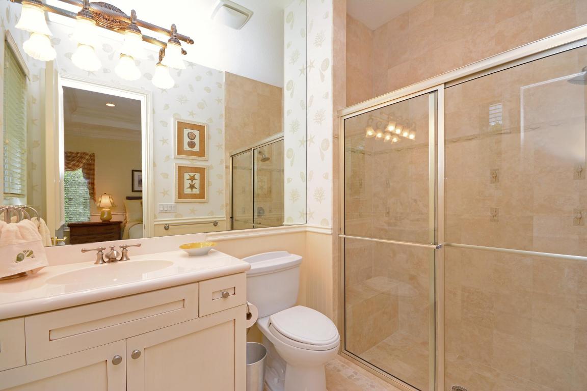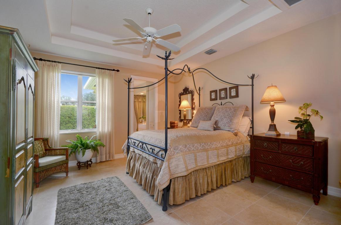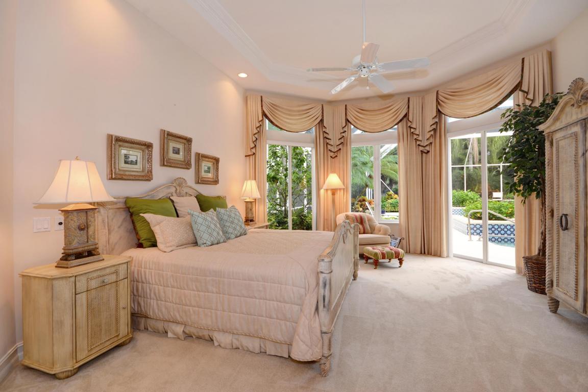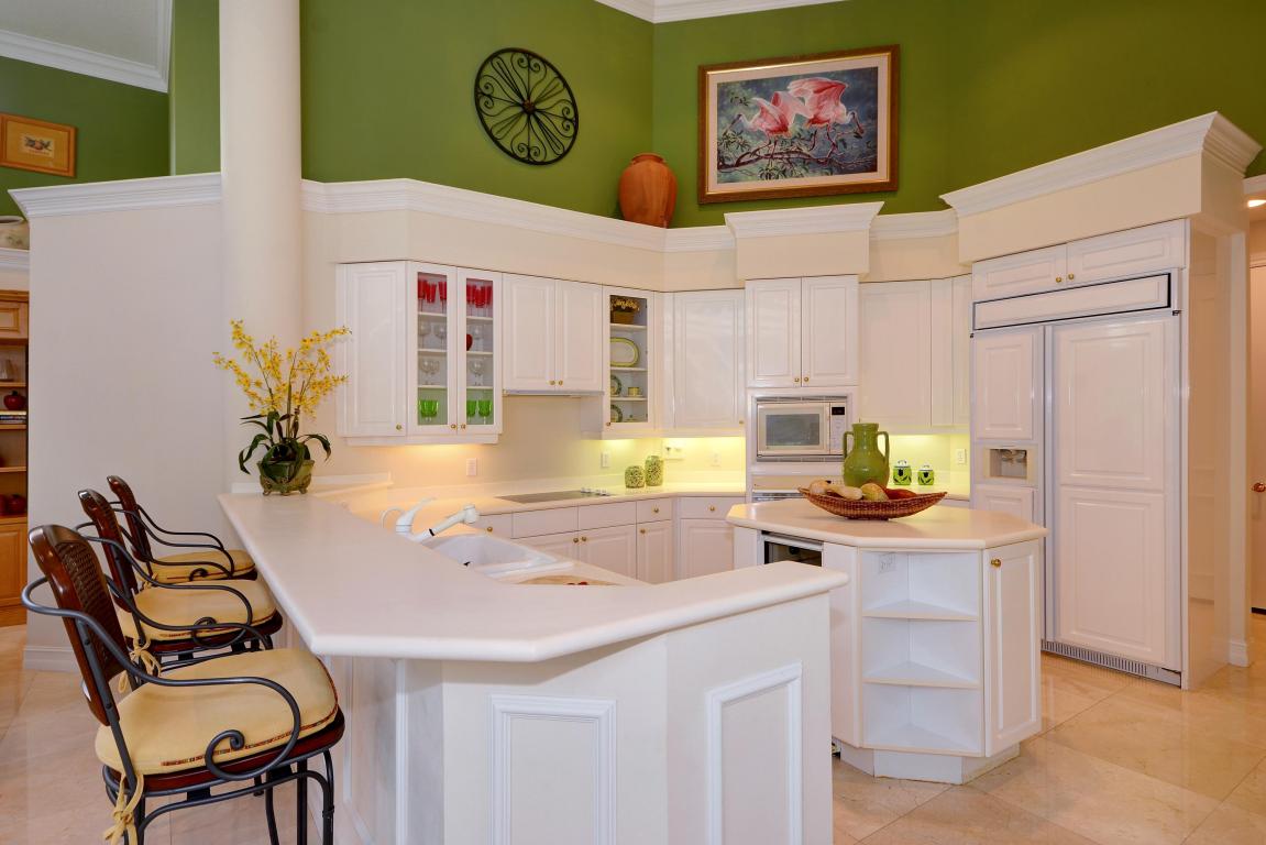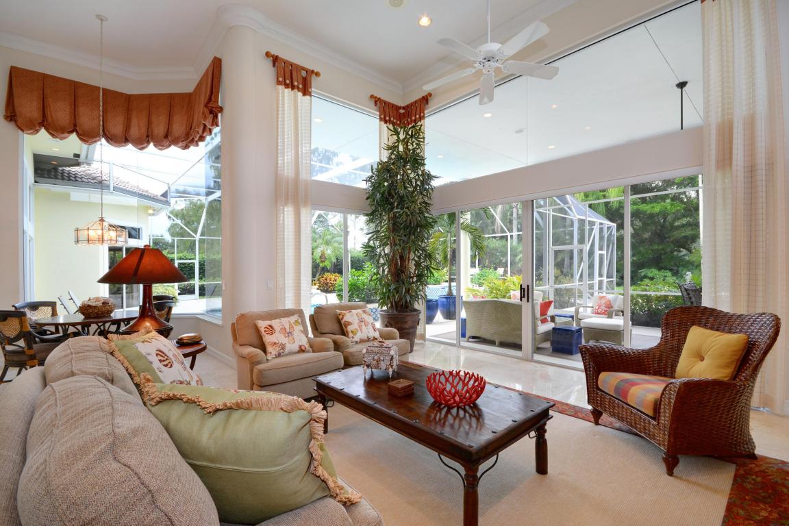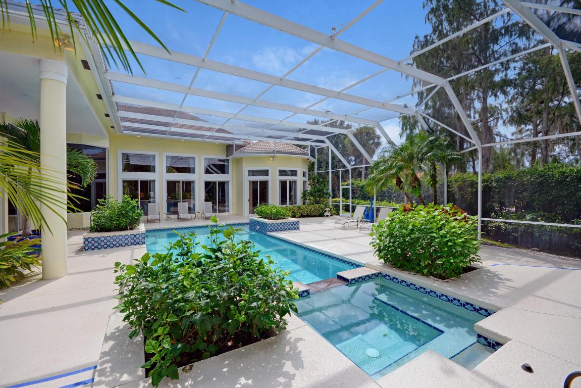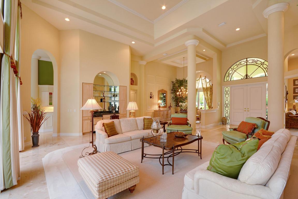 Great opportunity--Serious seller and price just reduced! Enjoy Palm Beach County's best country club living at Breakers West in central West Palm Beach. Impressive estate situated on almost .75 acre corner lot on private gated street nestled along Breakers Rees Jones golf course. Circular driveway welcomes you to this stately 5BR + Library, 6 BA, 3-Car plus Golf Cart Garage home with over 5,000 sq ft A/C Liv Area. Popular open floor plan with tasteful coffered ceilings, crown molding throughout, & marble flooring provide the perfect backdrop for any decor. Formal living room with 3 set of doors w/transom windows above opens to spacious screened pool and patio area. Handsome library features floor to ceiling built-in bookcase in rich wood tones and has adjoining full bath.