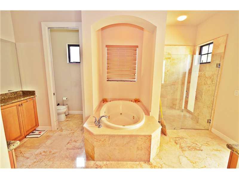 Spectacular 5/3 triple split floor plan single family home located on Cul De Sac. This amazing property features: marble floors throughout with carpet in bedrooms, huge lot with room for pool and plenty of privacy, stainless appliances with granite counte r tops & center island, master bedroom with extended sitting area, impact windows, central vac, 5th room that can be used as office or bedroom, water purification system throughout house & paver driveway and covered patio.