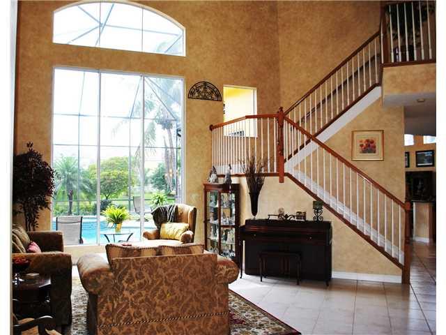 Enter your beautiful new home to elegant foyer to be greeted by 20' ceilings & floor to ceiling windows w/serene water views! Gorgeous estate home, built by Toll Bros offers 6 true bdrms (5 w/custom built walk-in closets)2 family rooms, executive style o ffice,exercise room, gourmet kitchen w/dbl ovens,maple cabinets, granite tops,crown mouldings,butted glass window in oversized breakfast area,screened, heated pool/spa. Heron Bay offers 2 recreation centers w/resort style pool/gym/summer camp/tennis/more