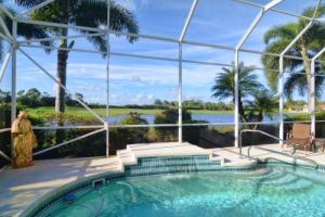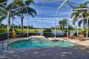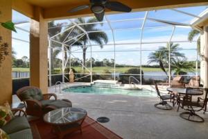 Spectacular 3BR/3BA + Den home with Beautiful views of the lake and golf course. Large Patio with Pool! Upgraded Gourmet Kitchen, Upgraded Cabinets, Appliances. 2 Car Garage + Golf Cart garage. No Membership Required. Maximum privacy with the golf course and cart path across the lake. No golf balls or golfers in the yard.Best value in the development.