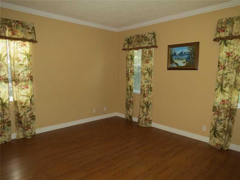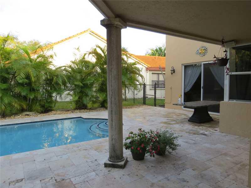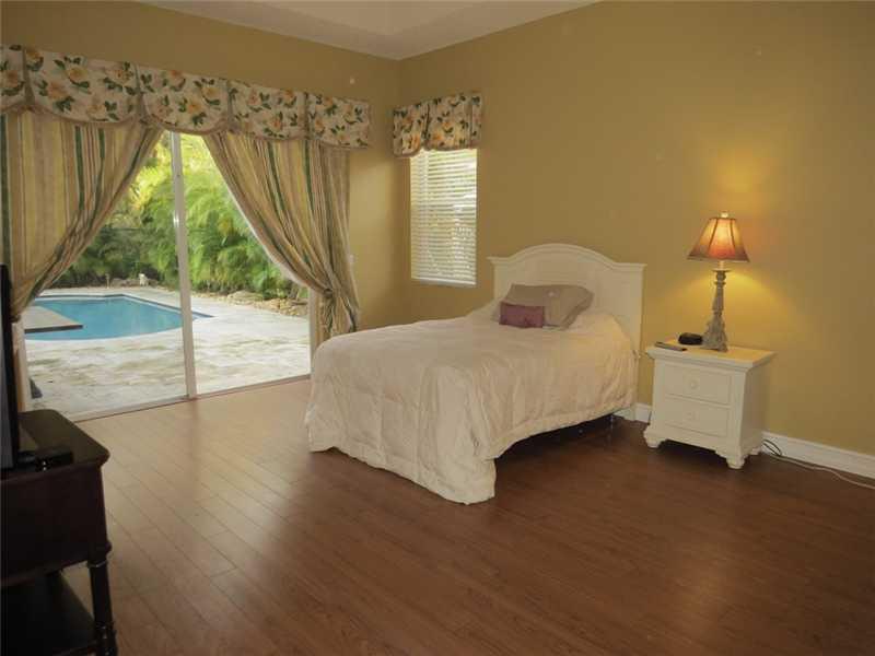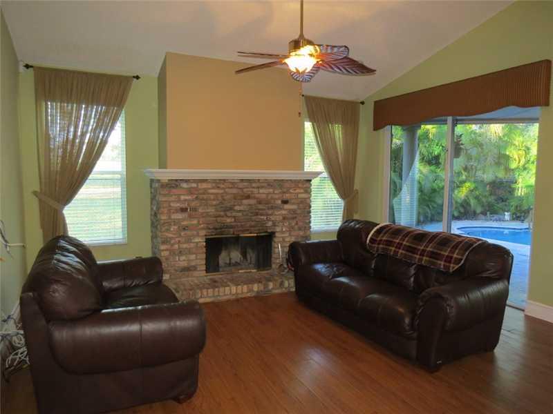 Beautifully maintained home backing up to 102 acre Pine Island Ridge. With no neighbors behind you, enjoy views of live oak trees and walk the nature path leading to 243 acre Tree Tops Park. Featuring a split floor plan with volume ceilings, 4 bedrooms + den/office or 5th bedroom. Kitchen with granite & stainless steel, volume ceilings & brick fireplace. Tile and wood laminate throughout. Pool remarcited 2013, gorgeous travertine deck, new gutters 2012, A/C 2009, Roof 2006. This is a wonderful home!